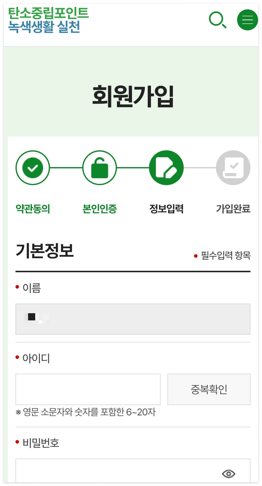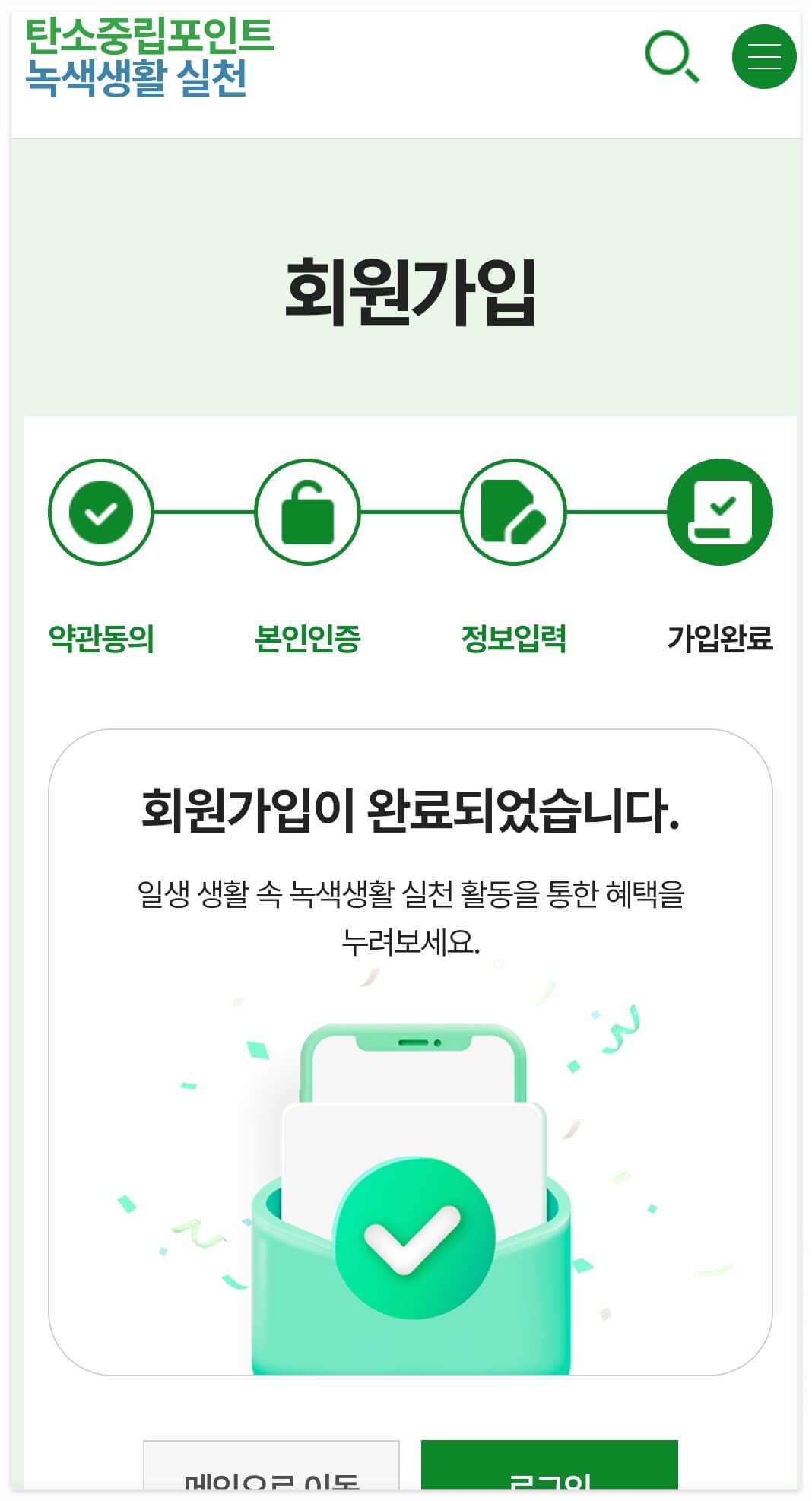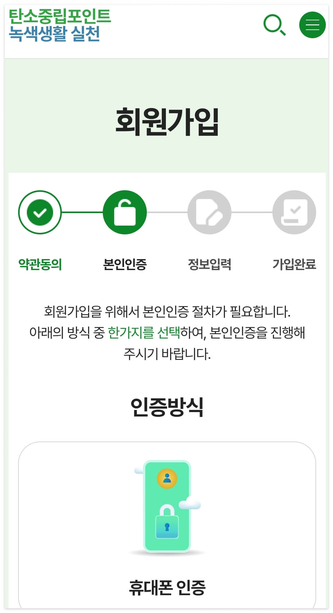 ① 탄소중립포인트 녹색생활 실천 홈페이지에 접속하여 회원가입을 진행해주세요.