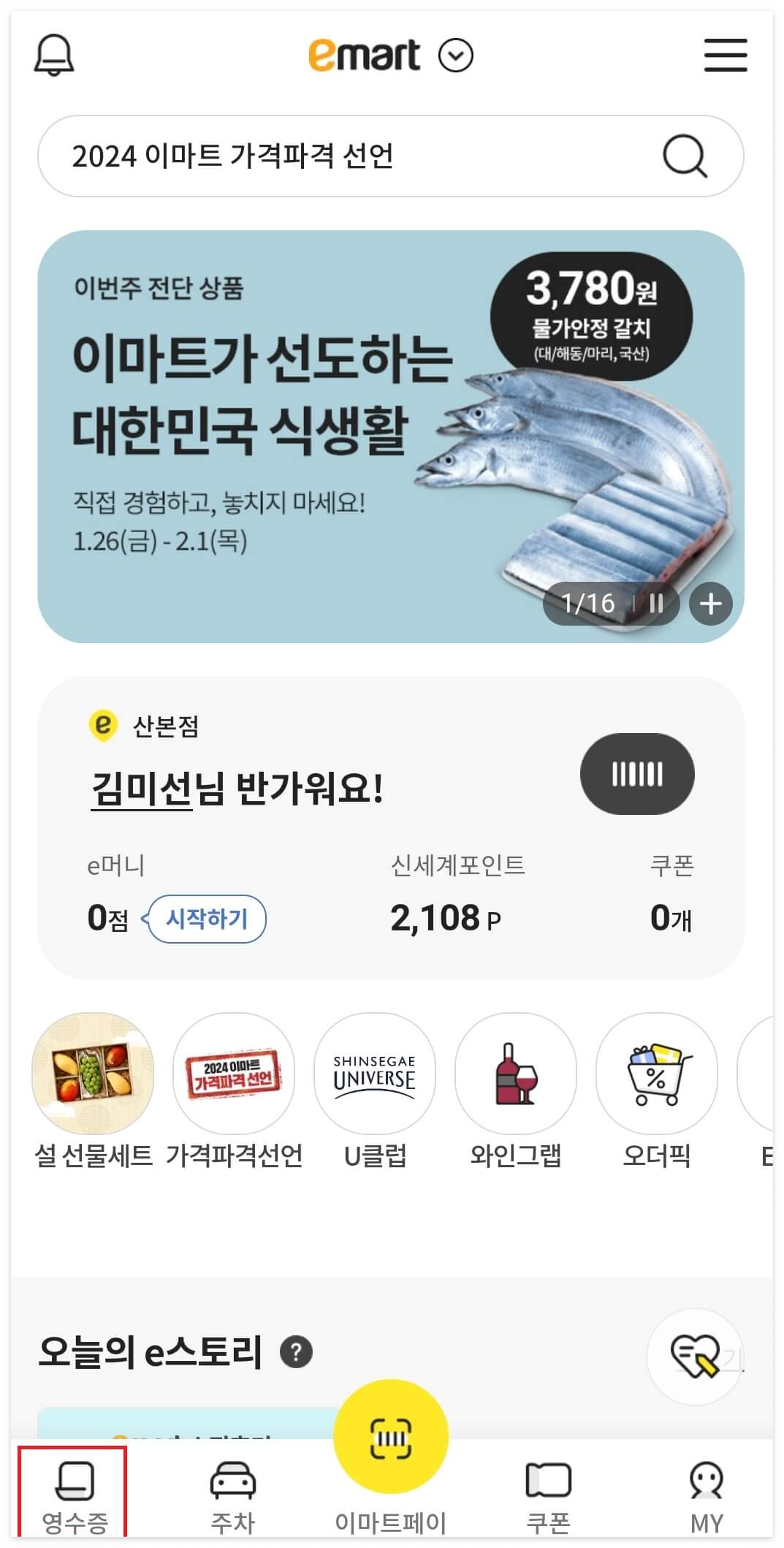 이마트에 전자영수증 등록을 하려면 이마트 모바일 앱에 접속하여 진행합니다. 저는 이마트를 자주 이용하는데 이마트몰 앱에 들어가서 아무리 찾아도 전자영수증 등록하는 곳이 없더라고요. 꼭 이마트 앱에 들어가야 합니다.
