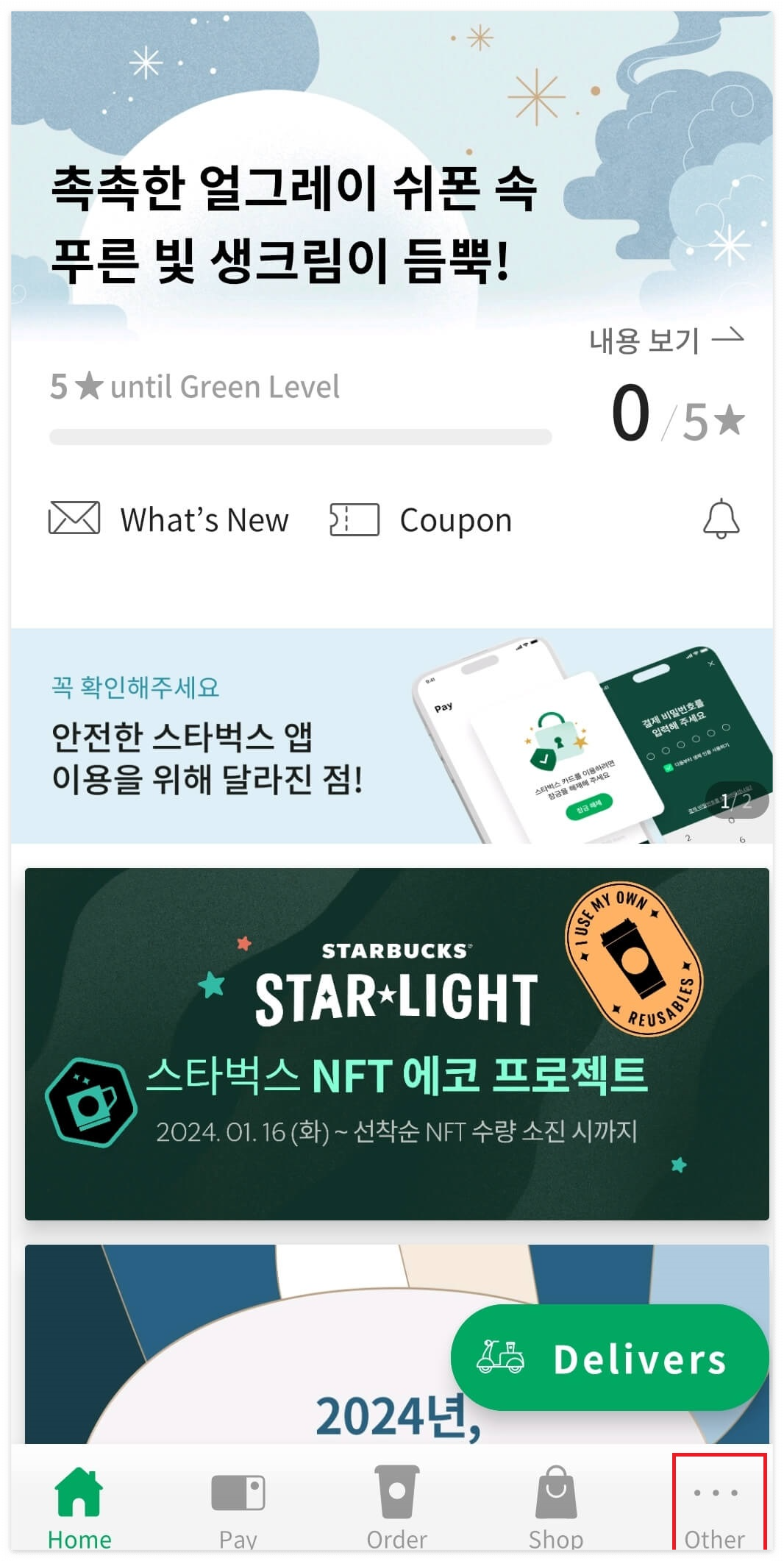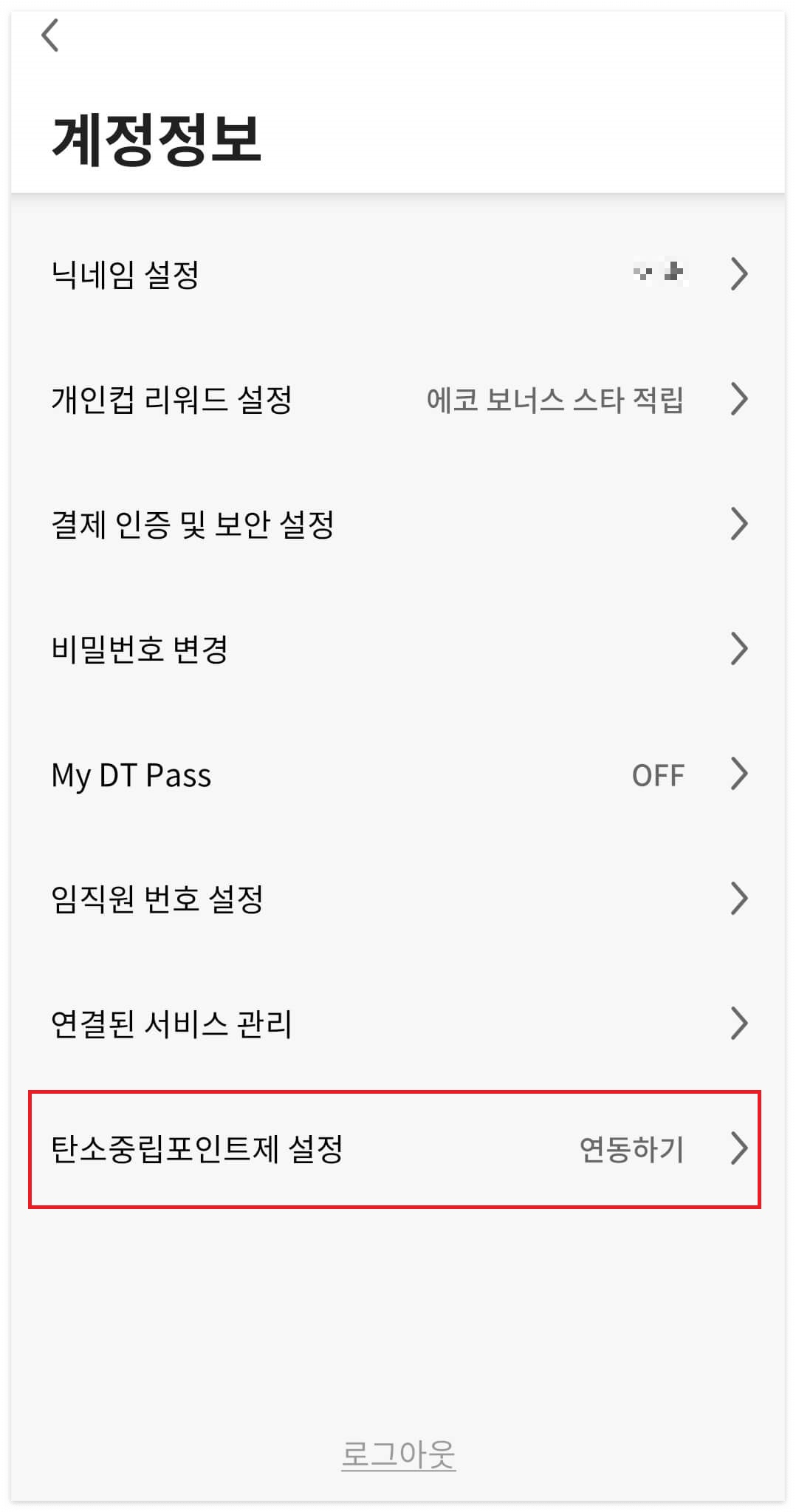 스타벅스 앱 하단 우측 Other을 클릭하고 계정정보에서 탄소포인트제 설정을 클릭하여 연동시켜 주세요.